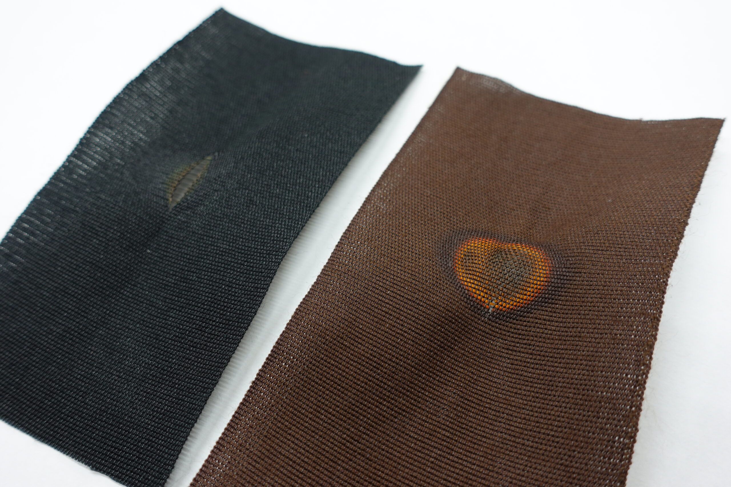 近年、宿泊施設や公共施設において防火基準が一層厳格化されるなか、畳空間に対しても安全性を確保したいというニーズが高まっております。伝統的な和空間の意匠を損なうことなく、万が一の火災発生時にも燃え広がりを抑制できる畳縁を目指し、当社では素材選定から織り構造に至るまで独自の開発を重ねてまいりました。このたび工業試験場にて「JIS L 1091C法」による燃焼試験を実施し、「着炎しなかった」という試験結果を得ました。