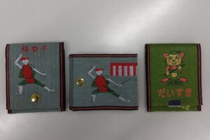 尾張旭市無形文化財である「棒の手」を表現した絵柄にて作成しました。縦型はカード専用、横型は小物入れとなっております。また、当店のオリジナルマスコットキャラクターの絵柄が入った小物入れです。(販促品)
