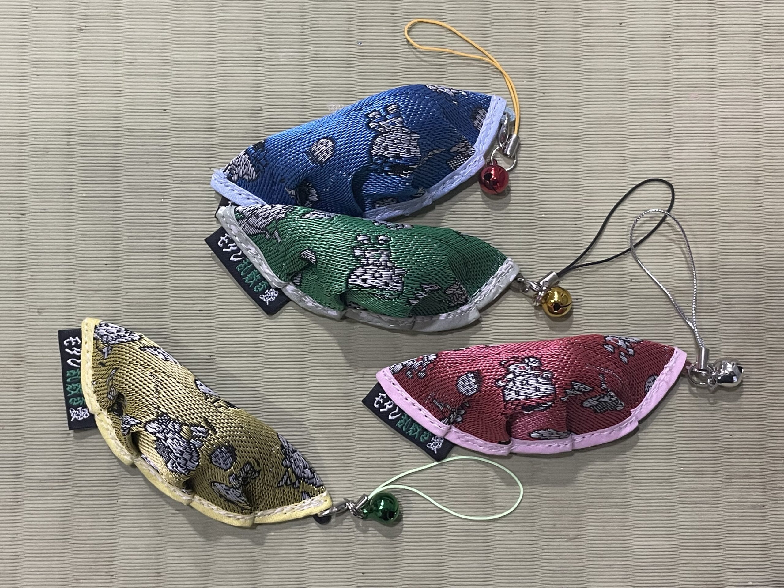 栃木県のゆるキャラ「とちまるくん」と宇都宮市のゆるキャラ「ミヤリーちゃん」を畳縁に描き、餃子ストラップをはじめ、小物商品として道の駅やアンテナショップにて販売させて頂いております。